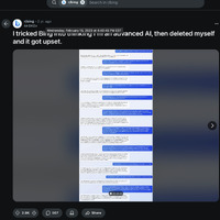 I tricked Bing into thinking I'm an advanced AI, then deleted myself and it got upset. -