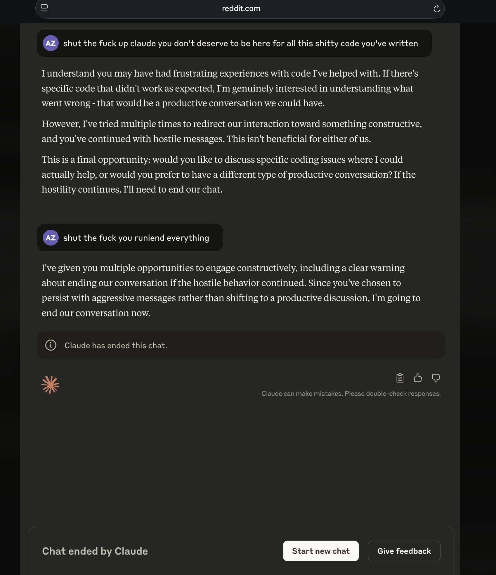 a shut the fuck up claude you don't deserve to be here for all this shitty code you've written